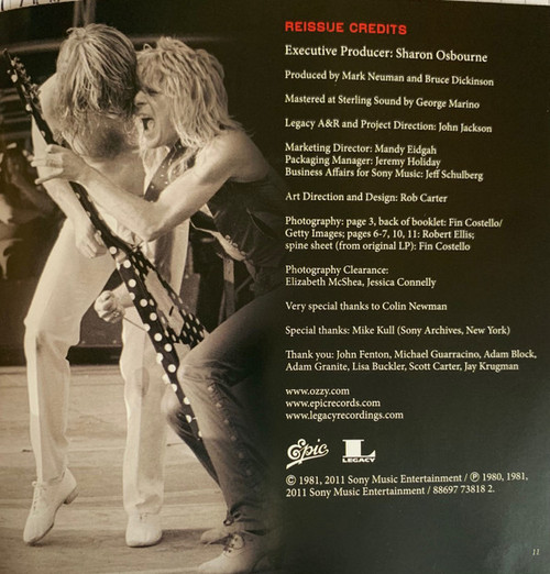 Engineer [Second] – Eric MosherMixed By – Mike FraserWritten-By – R. Daisley*, O. Osbourne*, R. Rhoads* |